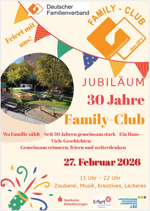 Einladung zum 30-jährigen Jubiläum des Familienzentrums Family-Club